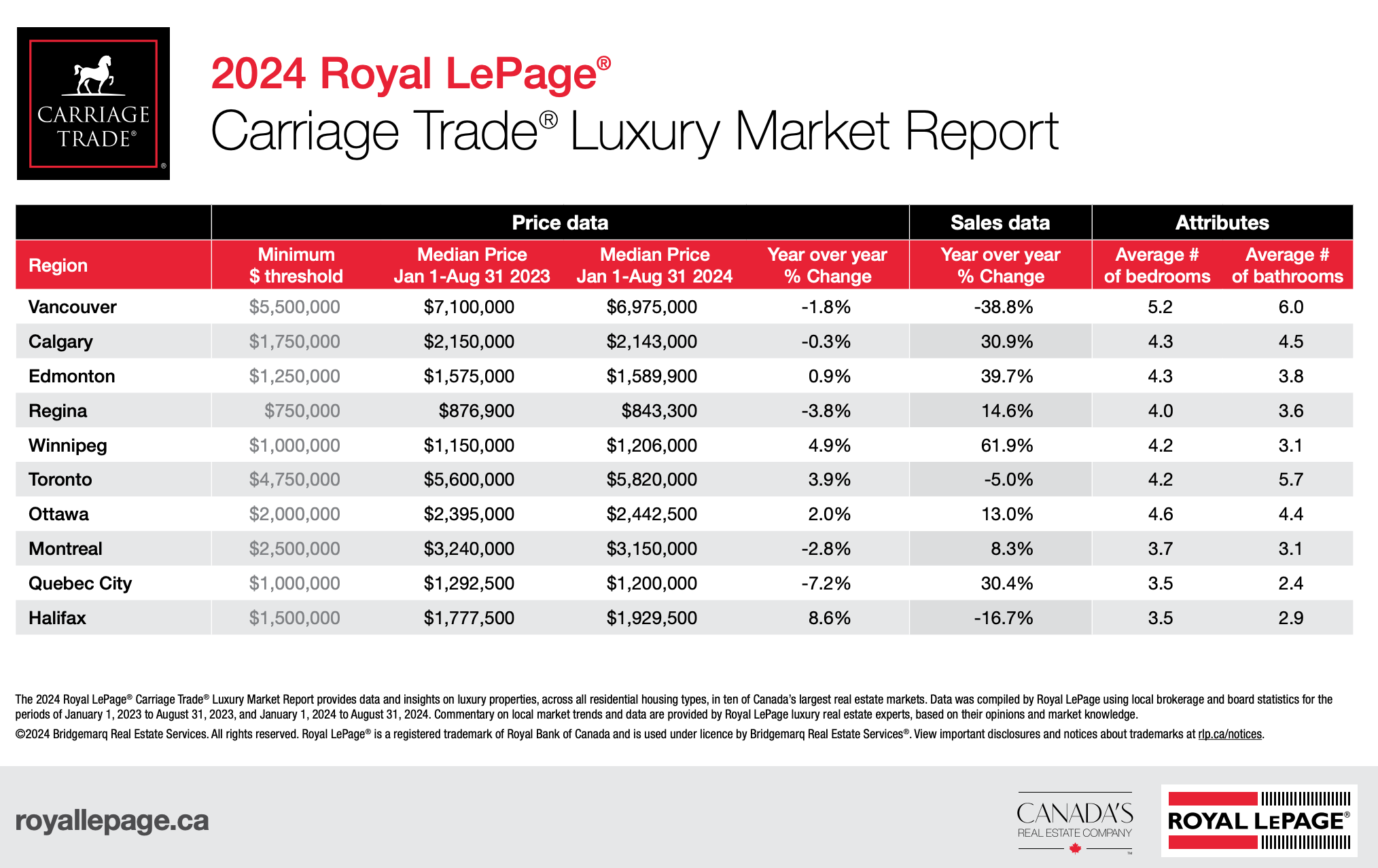 Here are a few highlights from the 2024 Royal LePage Carriage Trade Luxury Market Report: